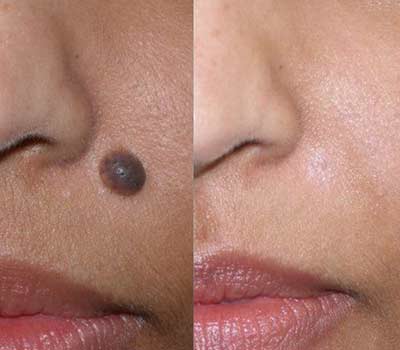 Note: The laser can also be used to remove the surface of the moon, thus eliminating the risk of scarring. However, the laser does not penetrate deep enough to tackle deep-seated moles.